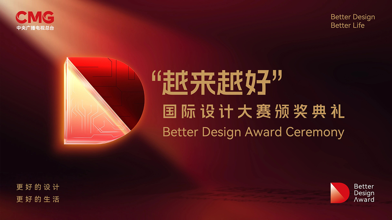 「越来越好」国际设计大赛(英文名称为Better Design Award,简称BDA),是在中央广播电视总台、广东省人民政府、广州市人民政府、深圳市人民政府指导下设立,面向全球评选的国际化综合设计领域赛事。大赛紧密围绕中国式现代化实践要求,聚焦现代化产业体系、新质生产力发展方向,发掘设计驱动技术、产品、场景和产业创新的卓越实践,展现设计赋能美好生活的前景蓝图,突出国际一流新型媒体传播优势,打造中国设计的世界级话语平台。